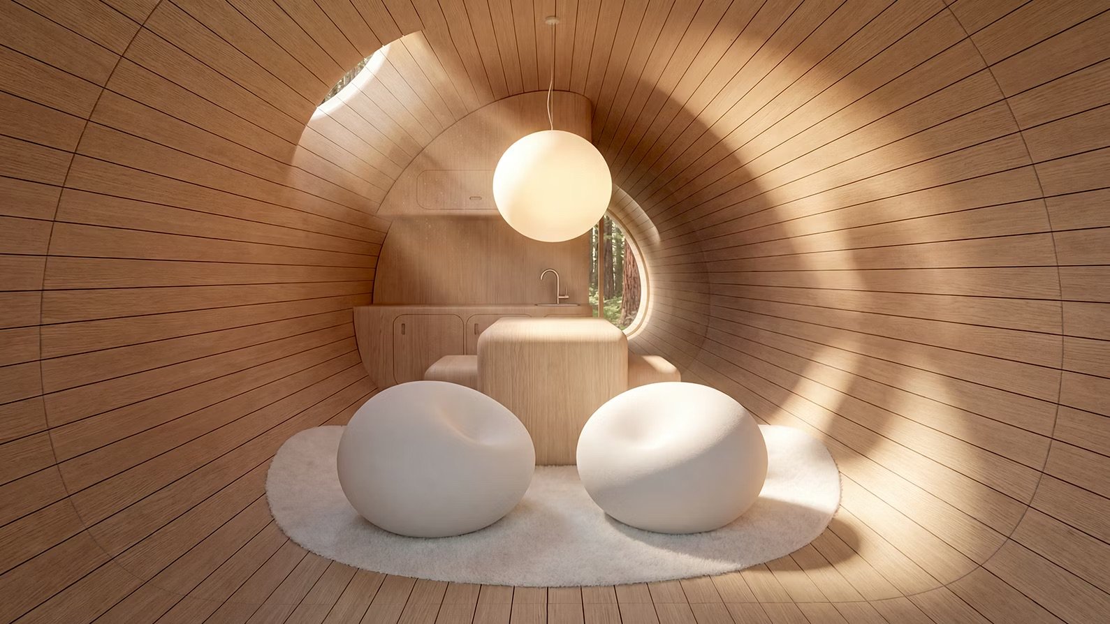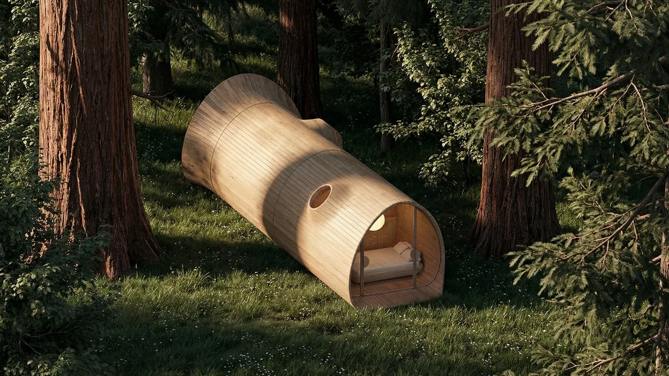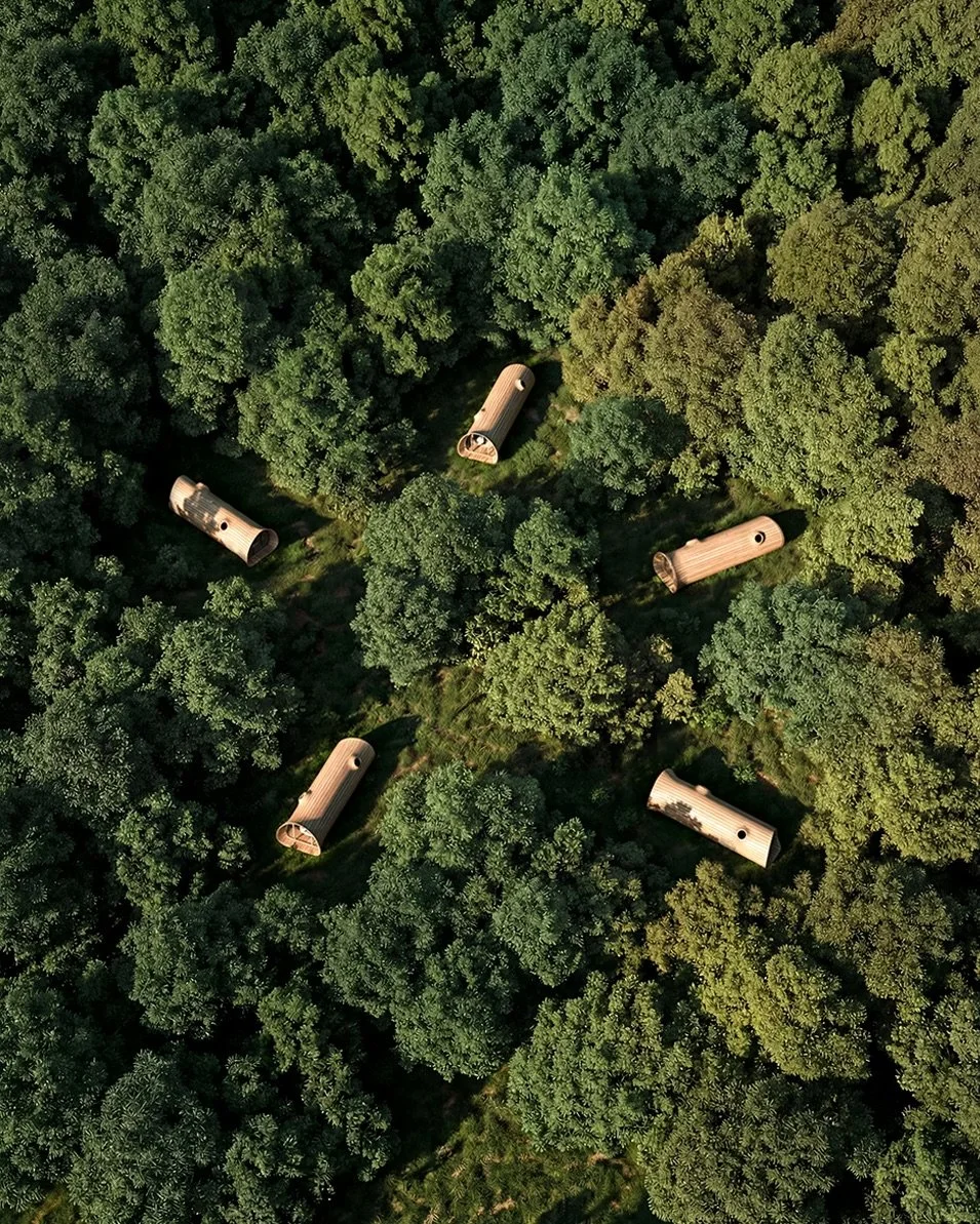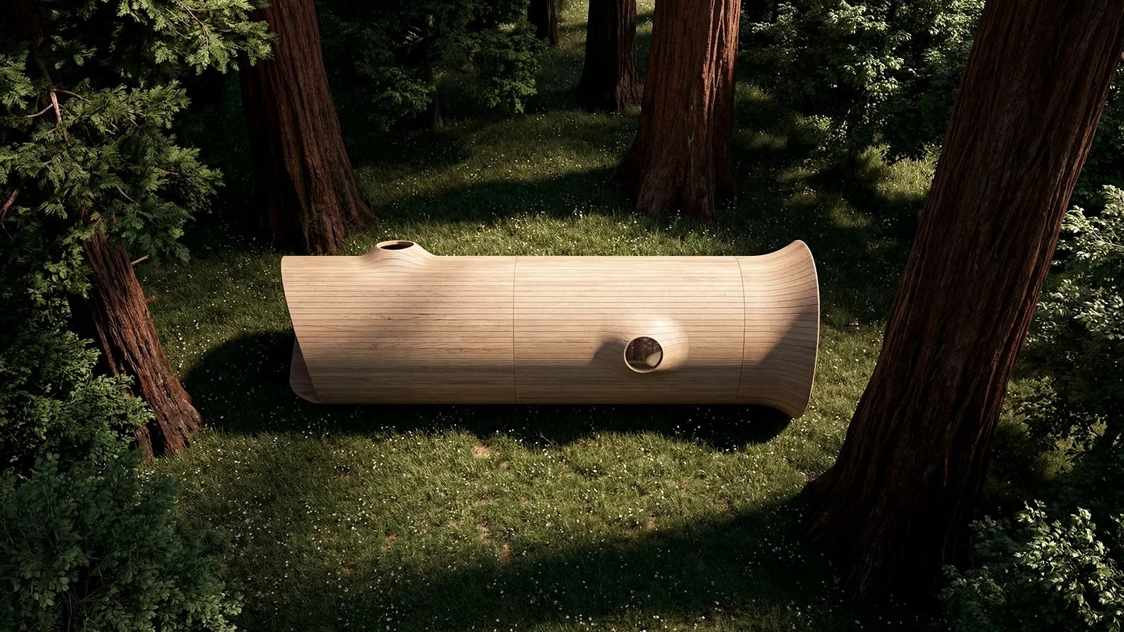 At Essesi, we set out to design a space that immerses you in nature while still offering a sense of shelter — something instinctive, deeply familiar and quietly reassuring. The form is inspired by the giant Redwood and Sequoia tress in California where Alberto Essesi grew up.
